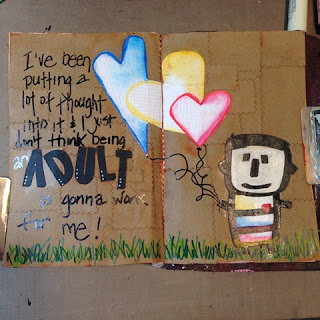 Now it was time for a glaze - I mixed DecoArt Media Transparent Red Iron Oxide and Golden Glazing Liquid and covered the page. I added a layer of Dina Wakley Media Clear Gesso over the hearts and Julius so they were sure to come clear and white when done.